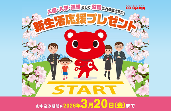 コープデリグループ 2026年1月26日 【CO・OP共済】入園・入学・進級そして就職される皆さま全員に新生活応援プレゼント 参加する → CO・OP共済 新生活応援プレゼント 応募フォーム → CO・OP共済 新生活応援プレゼント 応募フォーム